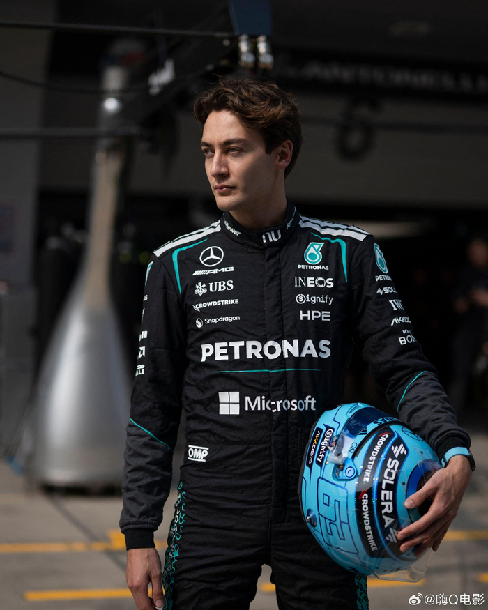 【高清】#George Russell# during a photoshoot at the Shanghai International Circuit ahead of the Chinese Grand Prix. 12 Mar 2026