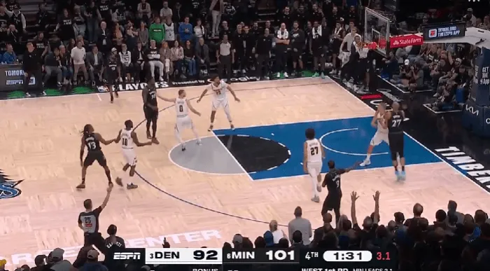 虎扑04月26日讯 NBA季后赛,掘金对阵森林狼的比赛正在进行中。